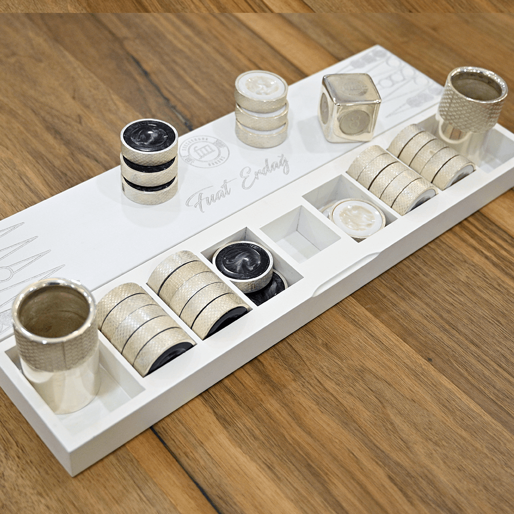 1 - Full set (2 cups, 1 folding cube, 2 sets (30 pieces) checkers) price: 4950 $.